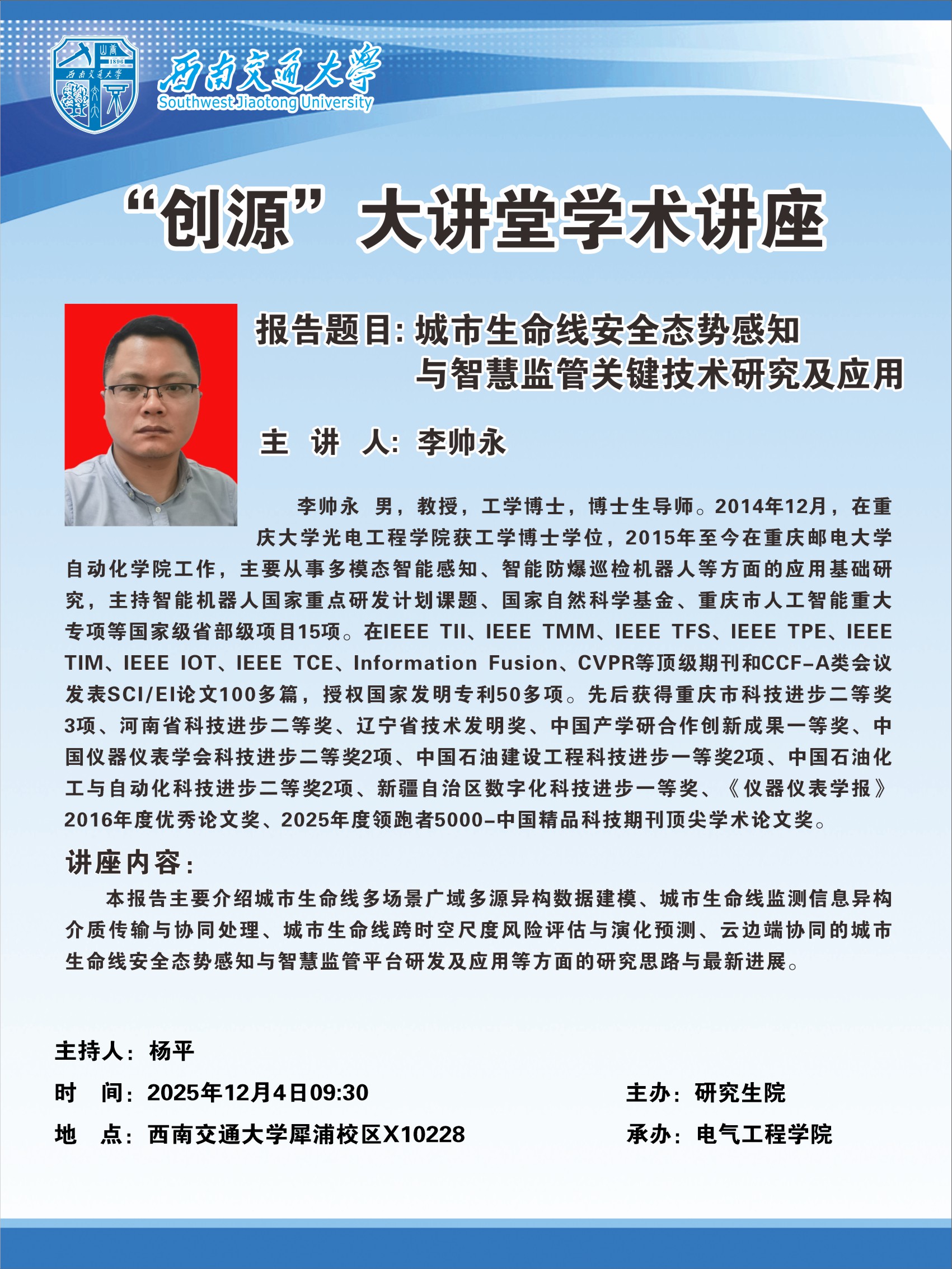 讲座地点:西南交通大学犀浦校区x10228