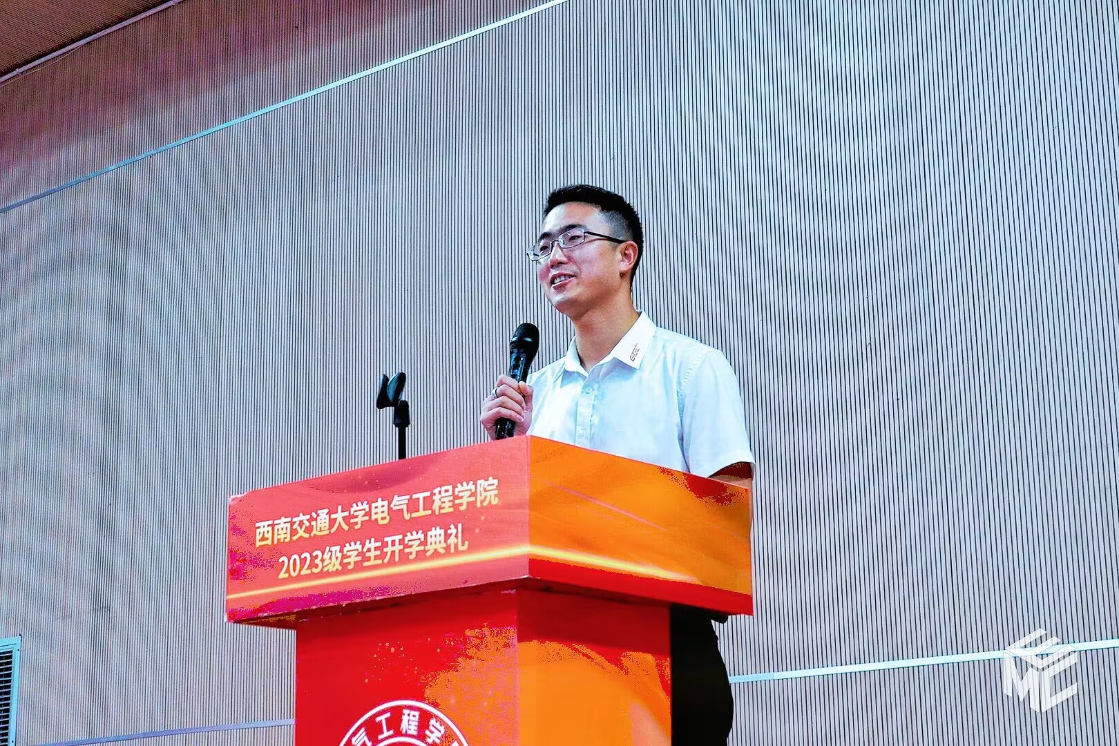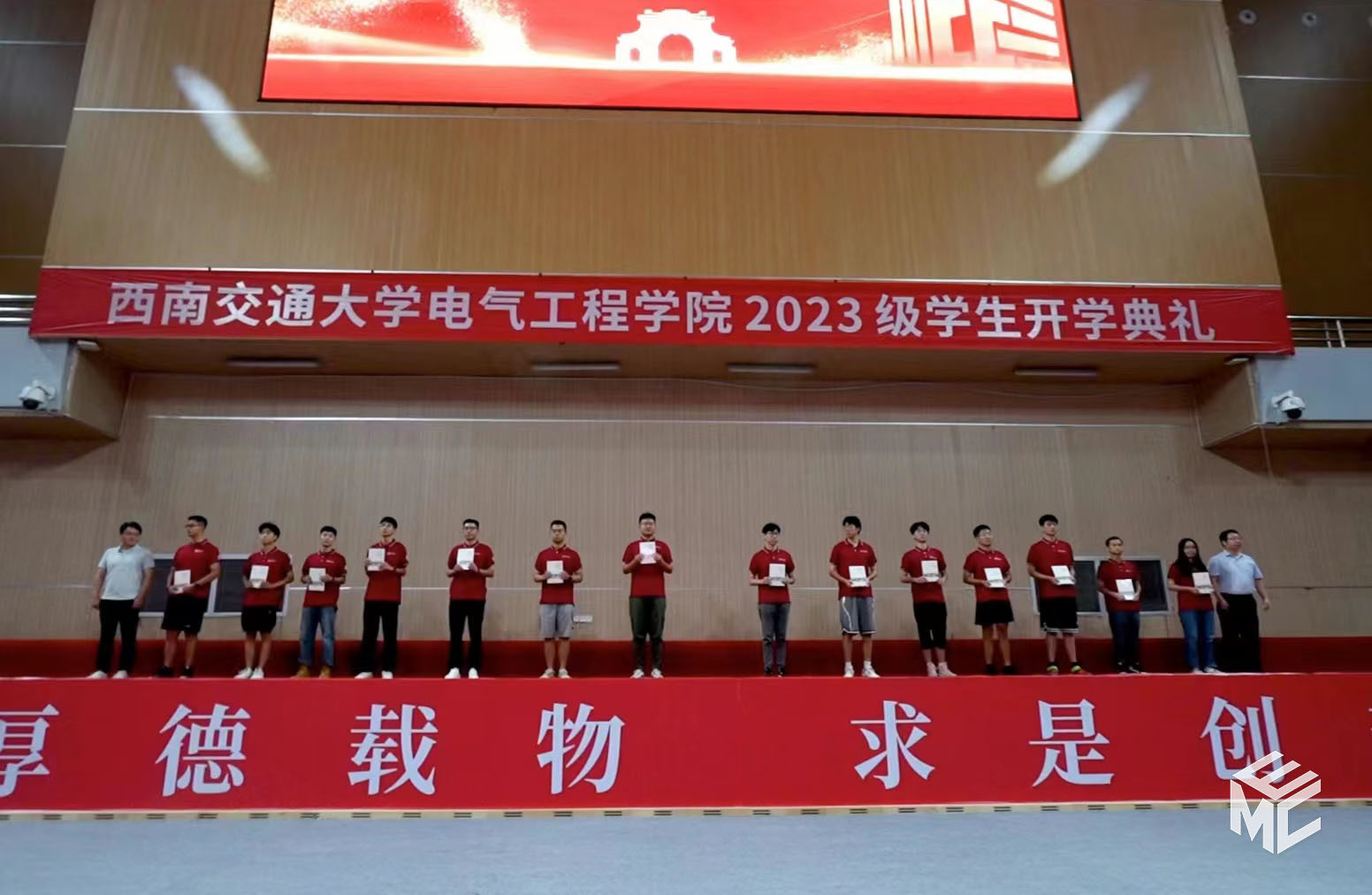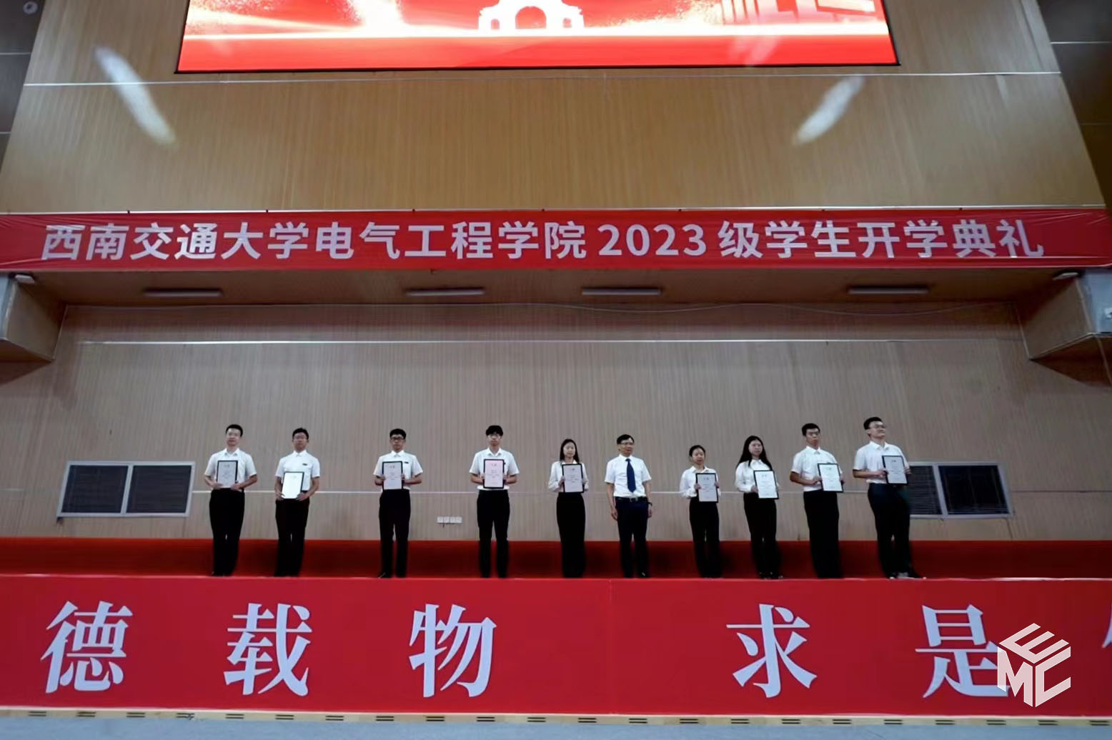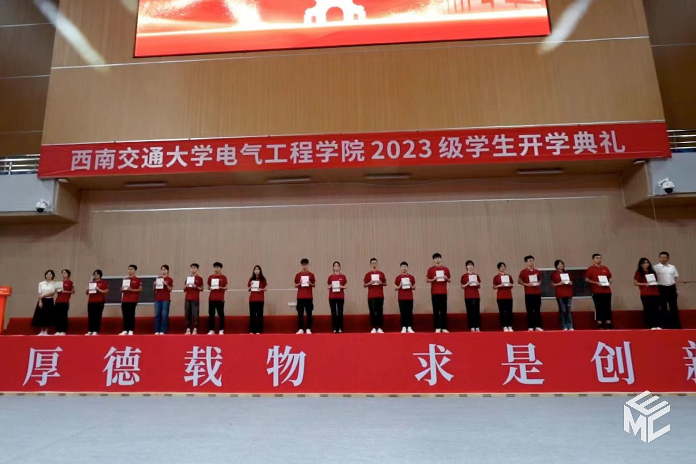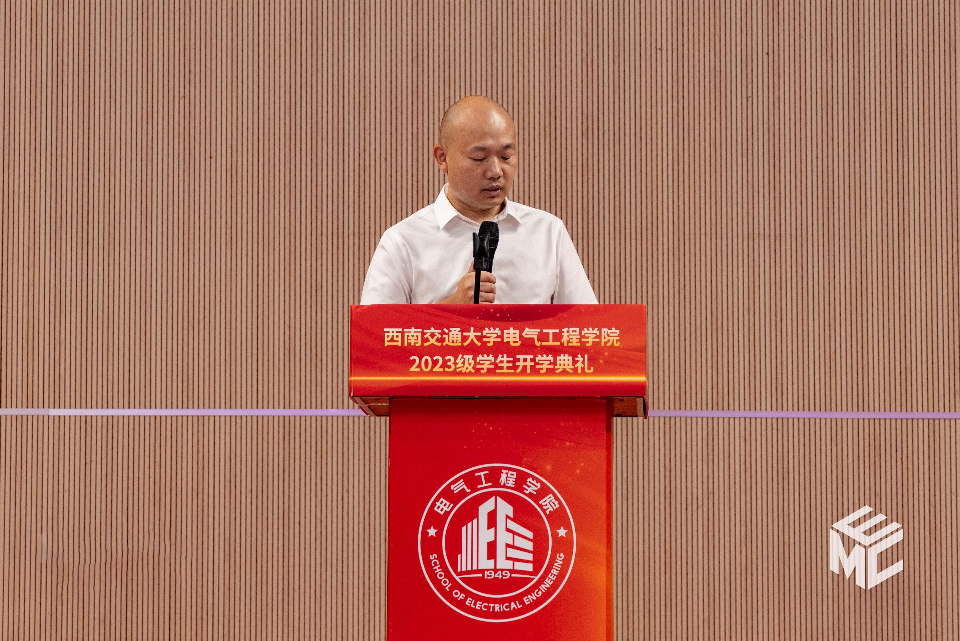 2023年9月3日上午10点,电气工程学院2023级学生开学典礼在犀浦校区飞碟体育馆顺利举行。电气工程学院院长何正友,党委副书记谢力、王轶,副院长陈民武、胡海涛、刘志刚,院长助理黄德青,电力工程系系主任吴积钦,电工电子系系主任卿安永,办公室主任樊兵兵,学生支持办公室主任张婷婷,团委书记张异,2023级本科班导师,2023级全体本硕博新生参加开学典礼。典礼由谢力副书记主持。