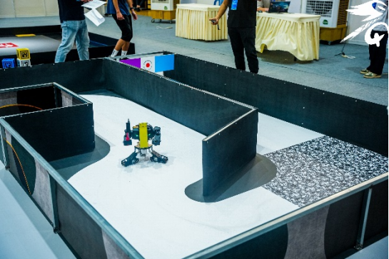 视觉对抗比赛中,机器人通过图像处理识别赛道“路障”,到达终点最终完成“打靶”。轮式格斗比赛中,各队伍的机器人造型各异,在擂台上使用不同的控制方法寻找对手并将其打下擂台,同时还要区分擂台上的能量块。现场赛况激烈,各个队伍热情对抗,激烈角逐。