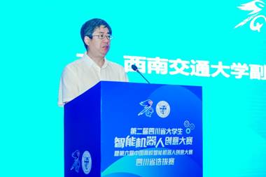 7月12日上午,第二届四川省大学生智能机器人创意大赛暨第六届中国高校智能机器人创意大赛四川省选拔赛开幕式在西南交通大学九里校区国际会议厅举办。西南交通大学党委常委、副校长康国政,四川赛区组委会副主任、西南交通大学教务处处长崔凯,四川赛区专家委员会主任、西南交通大学电气工程学院、智慧城市与交通学院院长何正友,评审专家代表及来自18个院校的参赛师生代表现场参会。会议由四川省大学生智能机器人创意大赛组委会副主任、西南交通大学电气工程学院党委书记王斌主持。