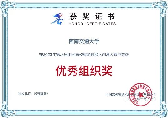 中国高校智能机器人创意大赛创办于2017年,首届大赛由中国高等教育学会、教育部工程图学课程教学指导委员会、中国高校智能机器人创意大赛组委会共同主办,浙江大学机器人研究院、中国高等教育学会工程教育专业委员会承办。大赛于2020年列入中国高等教育学会发布的全国普通高校大学生竞赛排行榜。四川省大学生智能机器人创意大赛由四川省教育厅主办,西南交通大学承办,电气工程学院协办,至今已连续举办两届,大赛自启动以来,受到省内各大高校师生的广泛关注和热烈响应。2023年,四川赛区以优异的办赛质量和高质量的国赛推选作品,荣获第六届中国高校智能机器人创意大赛优秀组织奖,学院王青元、潘育山老师荣获国赛优秀指导教师奖。