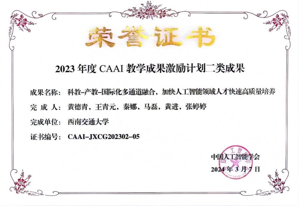 喜报!学院黄德青教授团队荣获“2023年度caai教学成果激励计划二类成果”奖项
