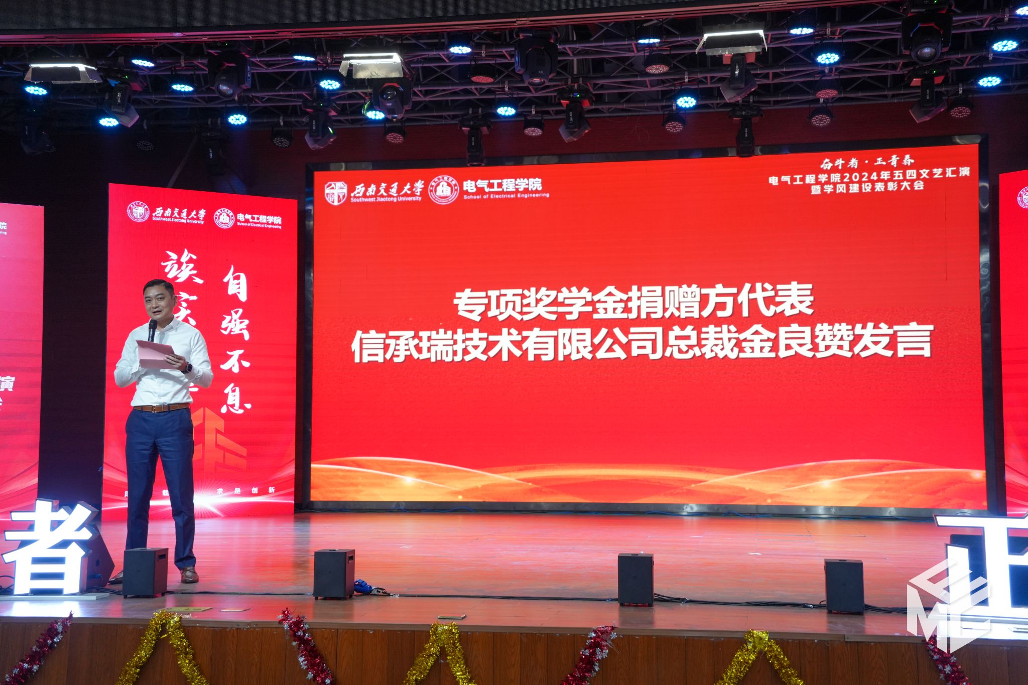 信承瑞技术有限公司总裁金良赞在发言中强调创新与教育的重要性,并鼓励青年学子勇敢面对挑战。金良赞总裁分享了公司的发展历程,以及个人职业生涯中的重要经验。他呼吁青年们保持好奇心,为社会的进步和发展贡献力量。