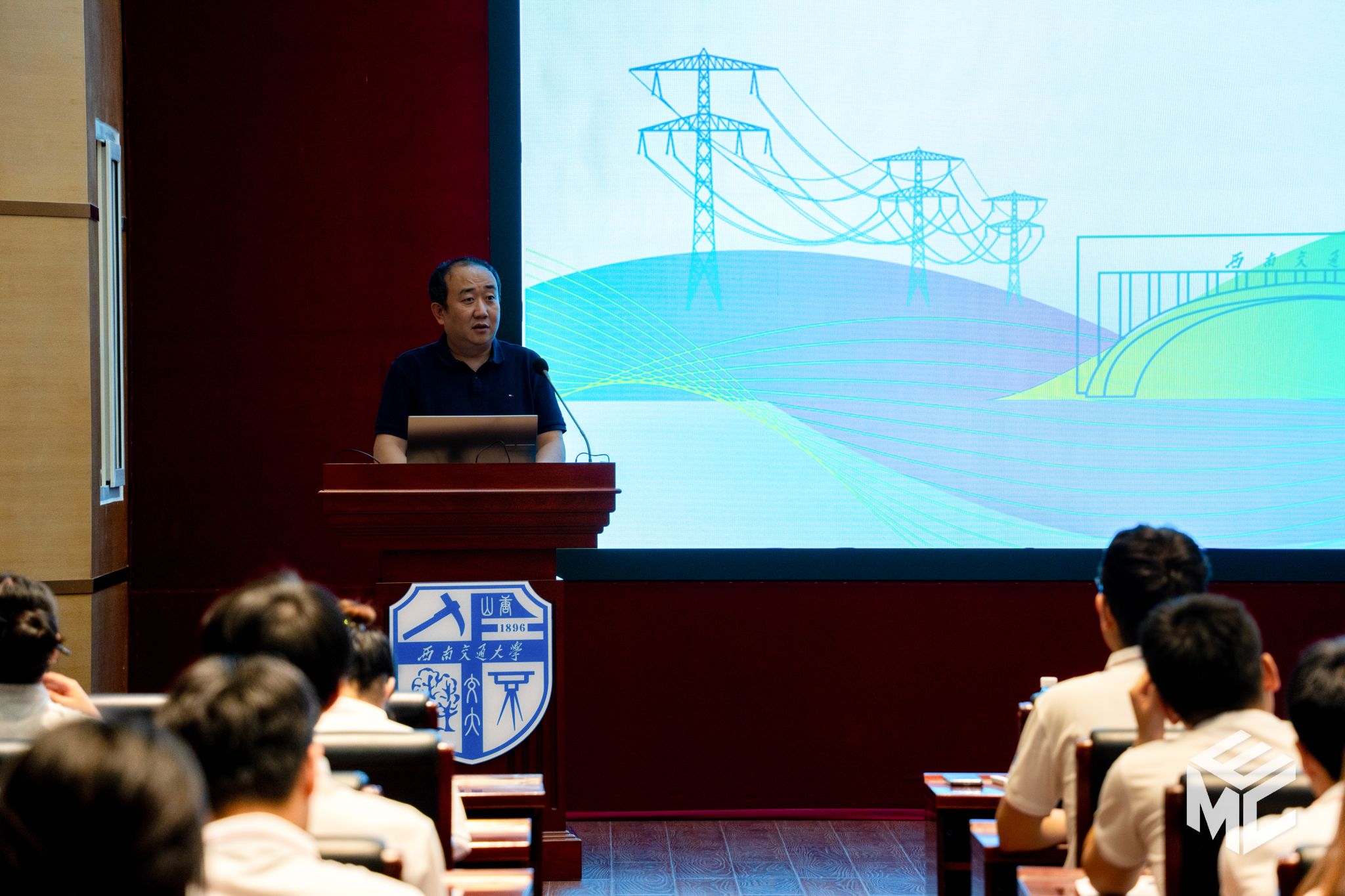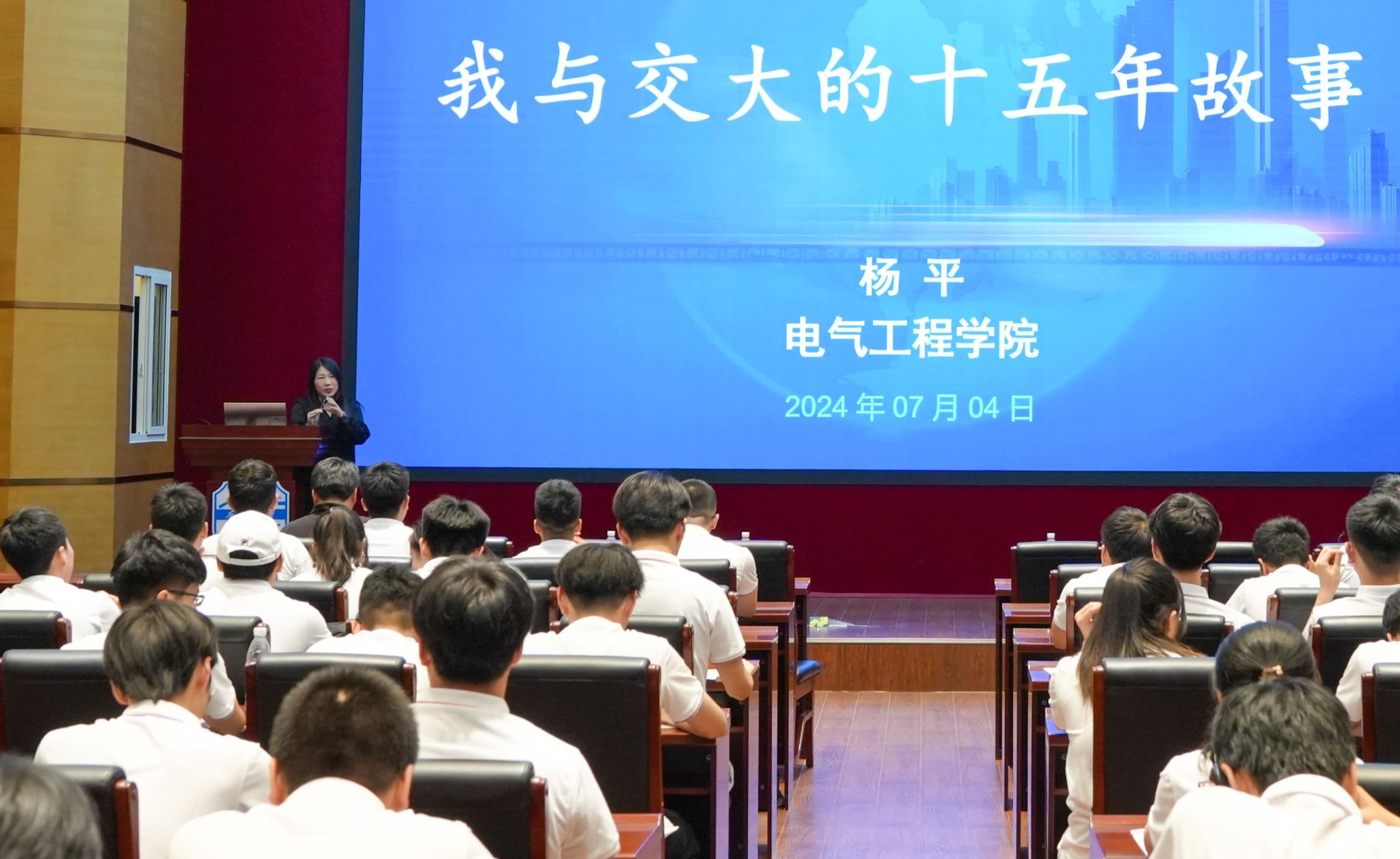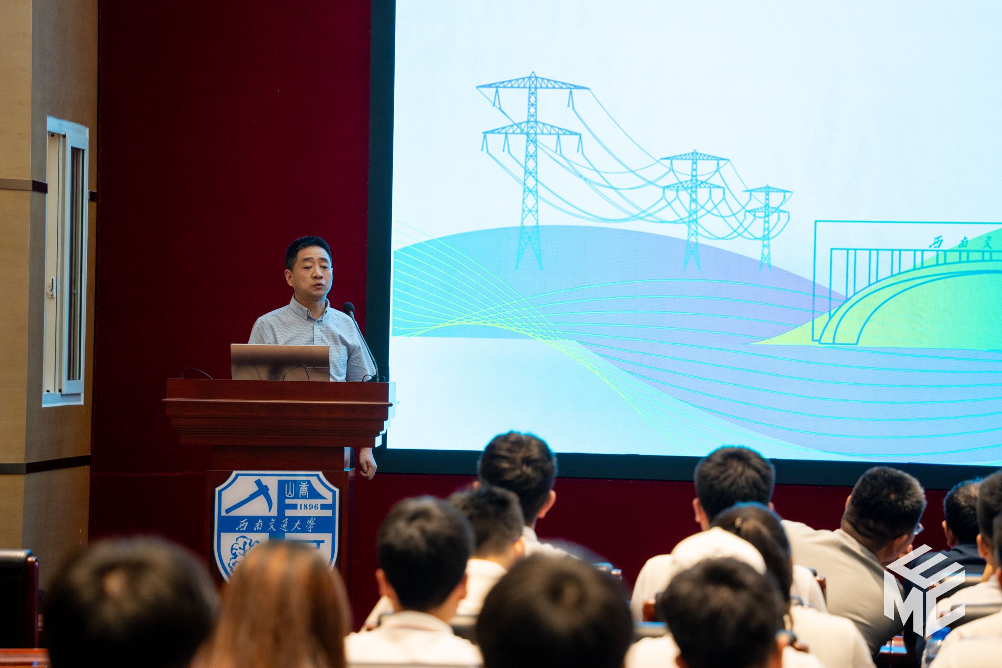 最后,教师代表杨平以“我与交大的十五年故事”为主题作报告。杨平教授分享了自己的求学历程、工作经验与学术研究经验,并建议同学们要勇于尝试,敢于探索,坚持努力。在报告的末尾,杨平教授欢迎在场同学能进入西南交通大学电气工程学院深造,扎根交大,圆梦交大。