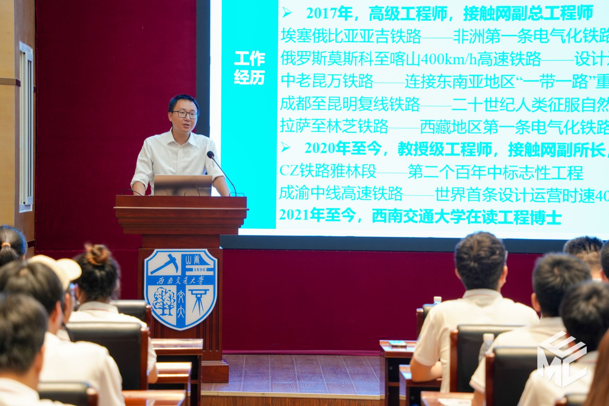校友代表中铁二局正高级工程师陈可分享了自己都工作经验与取得的工作成果,并提醒同学们要坚持努力,做好选择,才能不负韶华,用青春力量描绘未来美好蓝图。
