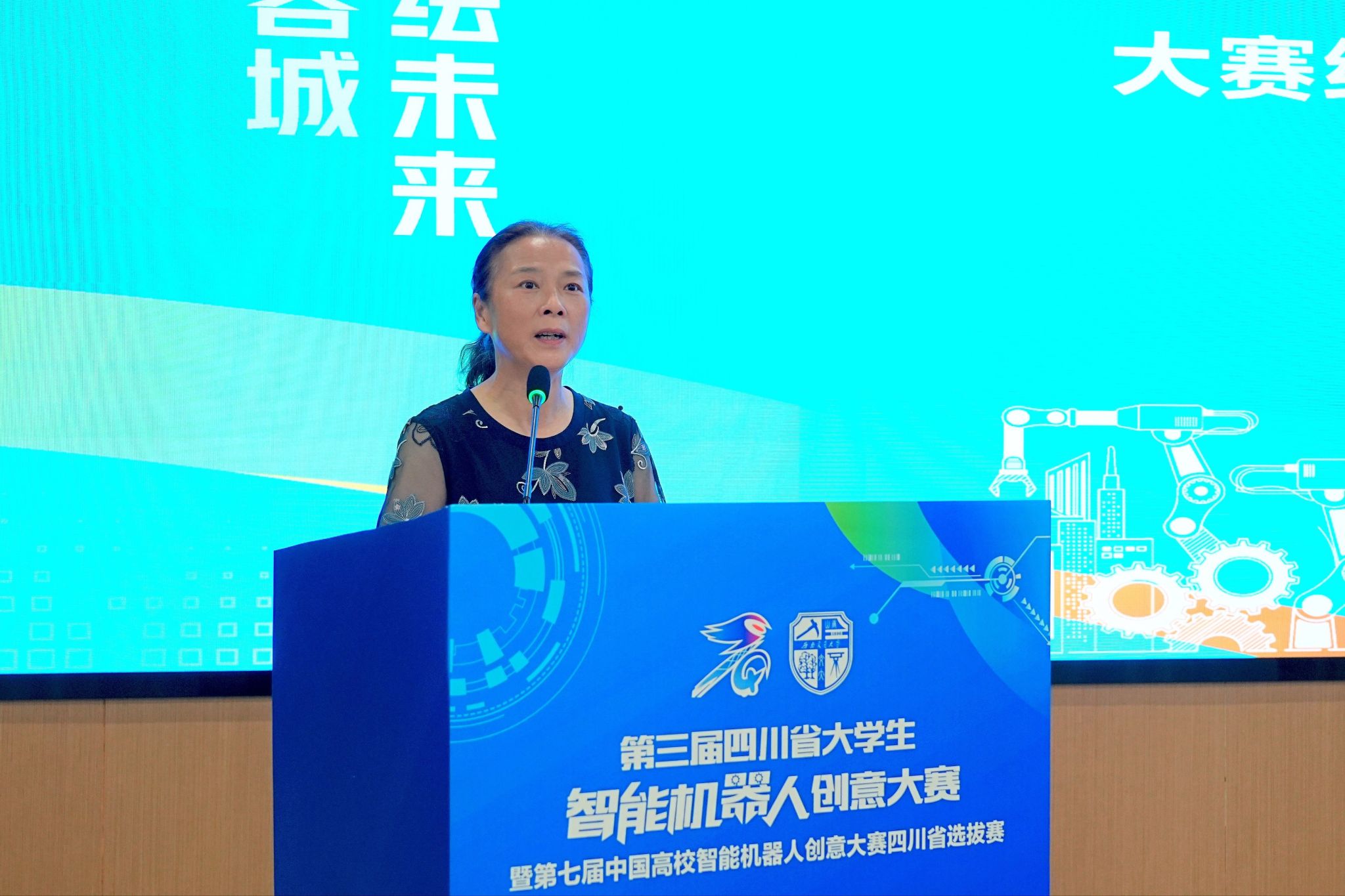 中国高校智能机器人创意大赛专家委员会秘书长顾大强教授以视频形式向大家致辞。顾大强教授首先对大赛的开幕表示衷心祝贺,对关心和支持大赛发展的四川省各高校表示衷心感谢。顾大强教授提到,中国高校智能机器人创意大赛始创于2017年,至今已经连续举办六年,今年的比赛规模尤甚以往,希望同学们能够在比赛中提升实践能力、培养创新思维,为社会发展添砖加瓦。