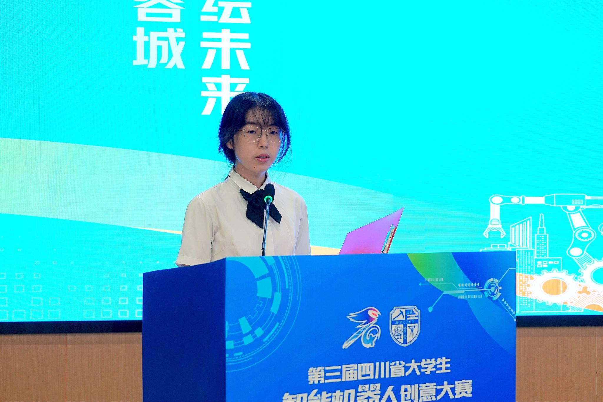 接着,参赛学生代表西南交通大学电气工程学院本科2022级赵晨虹同学发言。她分享了自己的备赛经验,以及在实践运用中克服的诸多困难。同时也与参赛同学共勉:青年学子身处科学技术蓬勃发展的时代,应该充分发挥潜力,运用所学的专业知识为智能机器人行业发展贡献力量。