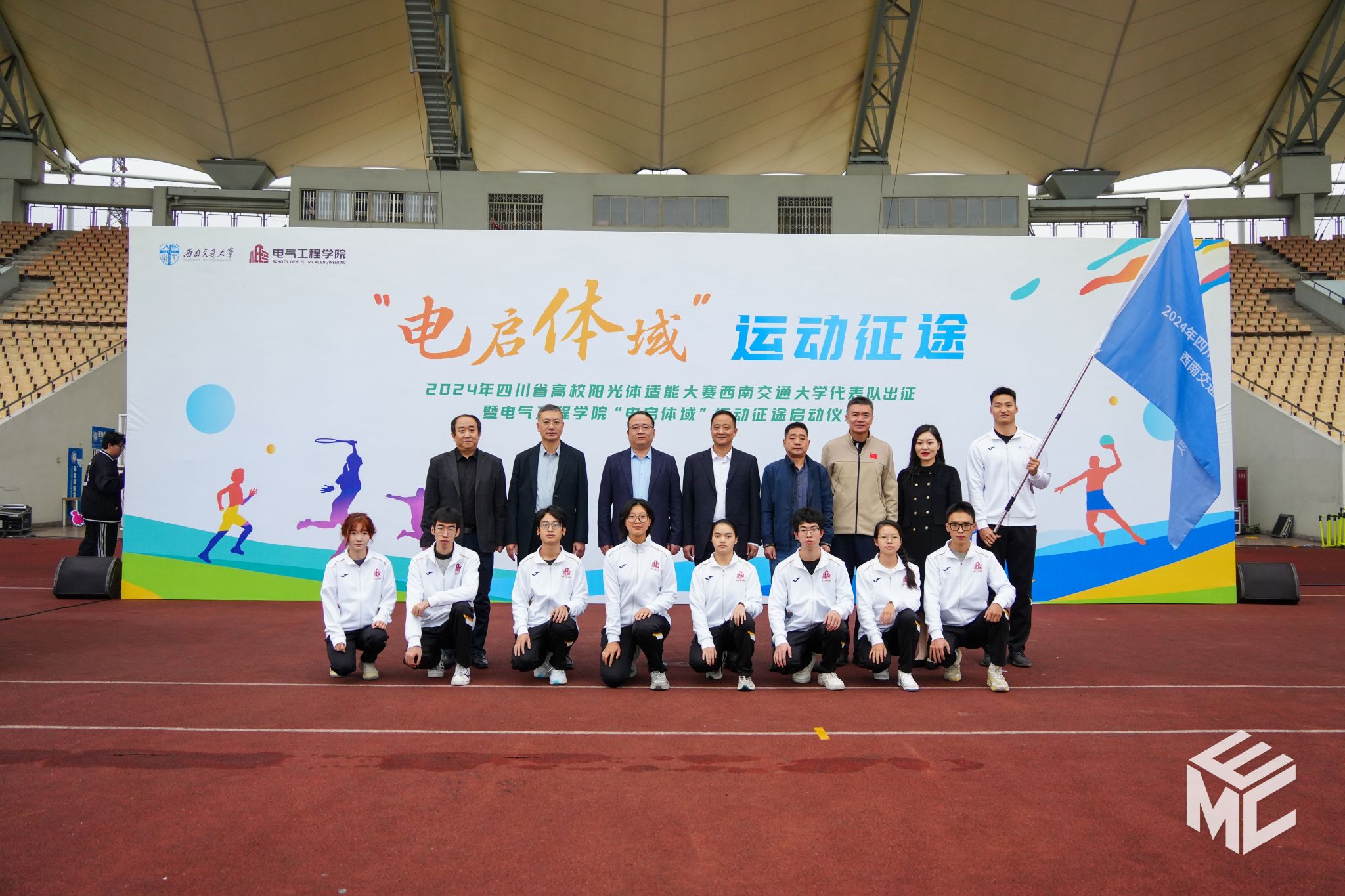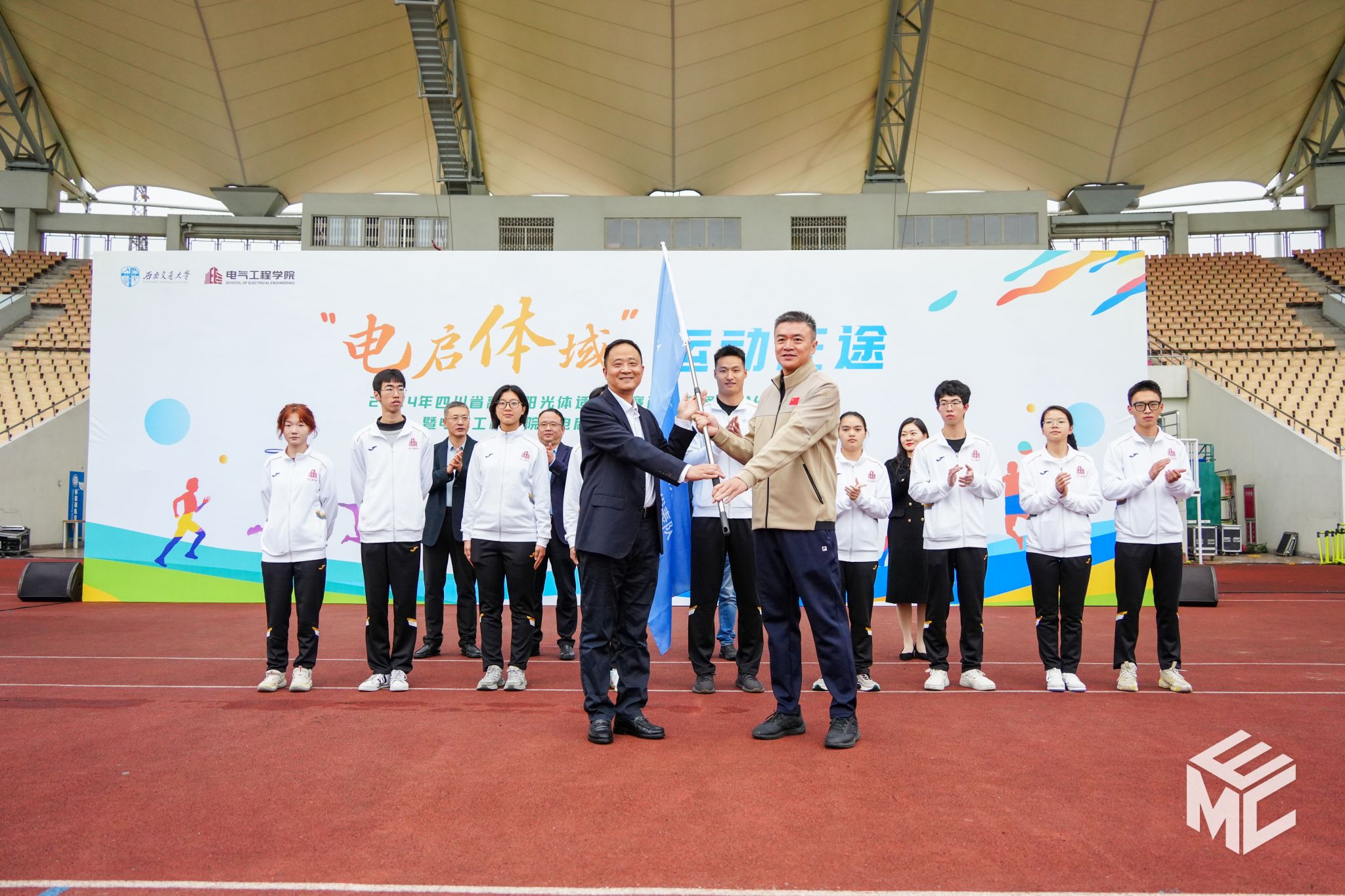 2024年11月11日上午8时30分,西南交通大学参加2024年四川省高校阳光体适能大赛出征仪式暨电气工程学院“电启体域”运动征途启动仪式在犀浦校区北区体育场举办。校党委副书记高平平,体育学院院长、奥运裁判刘江,党委学生工作部部长张军琪,电气工程学院院长马光同,党委书记王斌,校团委副书记李娜,学院党委副书记邢晓鹏,全体辅导员老师与电气工程学院近1000名师生共同参加。本次仪式由邢晓鹏副书记主持。