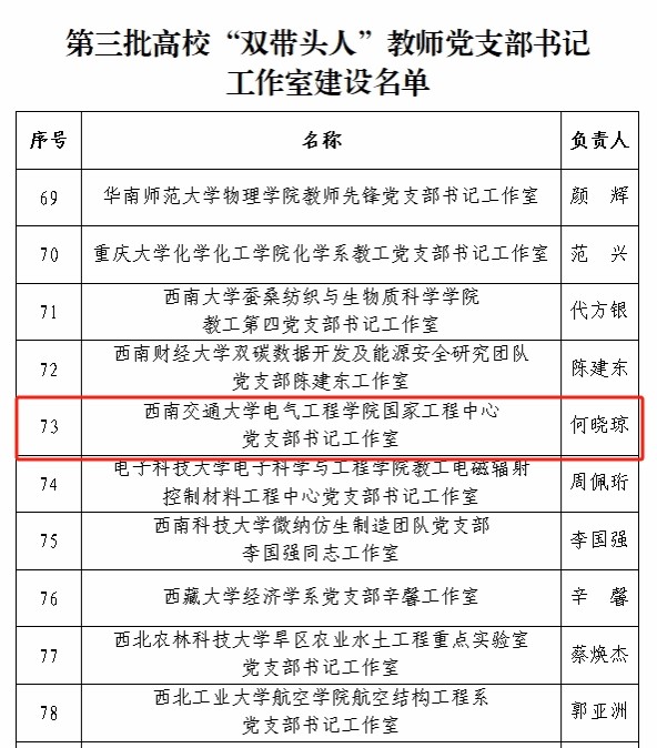 2023年,高仕斌教授领衔的“智能牵引供电教研团队”入选第三批“全国高校黄大年式教师团队”