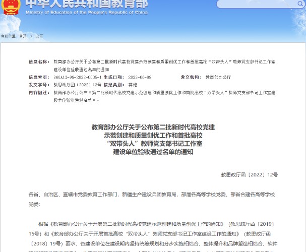 2024年,国家工程中心党支部入选教育部第三批高校“双带头人”教师党支部书记工作室