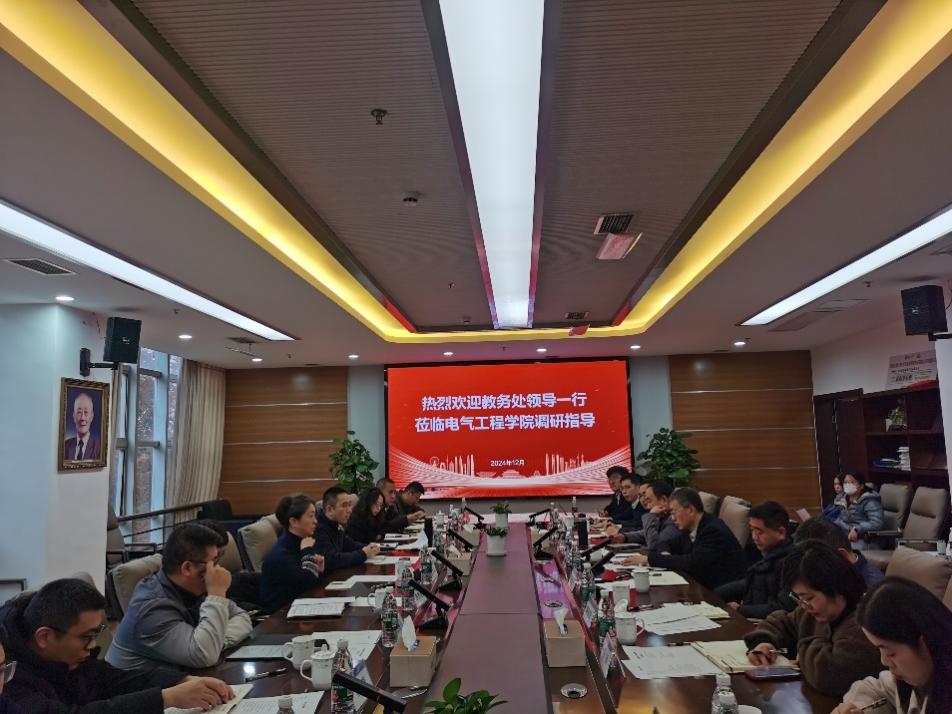 2024年12月8日,学校教务处处长富海鹰,副处长康锐、季敬皓、李相强、姬晓旭、刘鎏、李奇及相关科室负责人一行到访电气工程学院,对我院本科教学与人才培养工作进行调研交流。电气工程学院院长马光同、党委书记王斌、党委副书记邢晓鹏、副院长解绍锋、教学工作主管韩莹、团委书记张异、学生支持办公室主任张婷婷,各系负责人及青年教师代表等参加此次会议,会议由党委书记王斌主持。