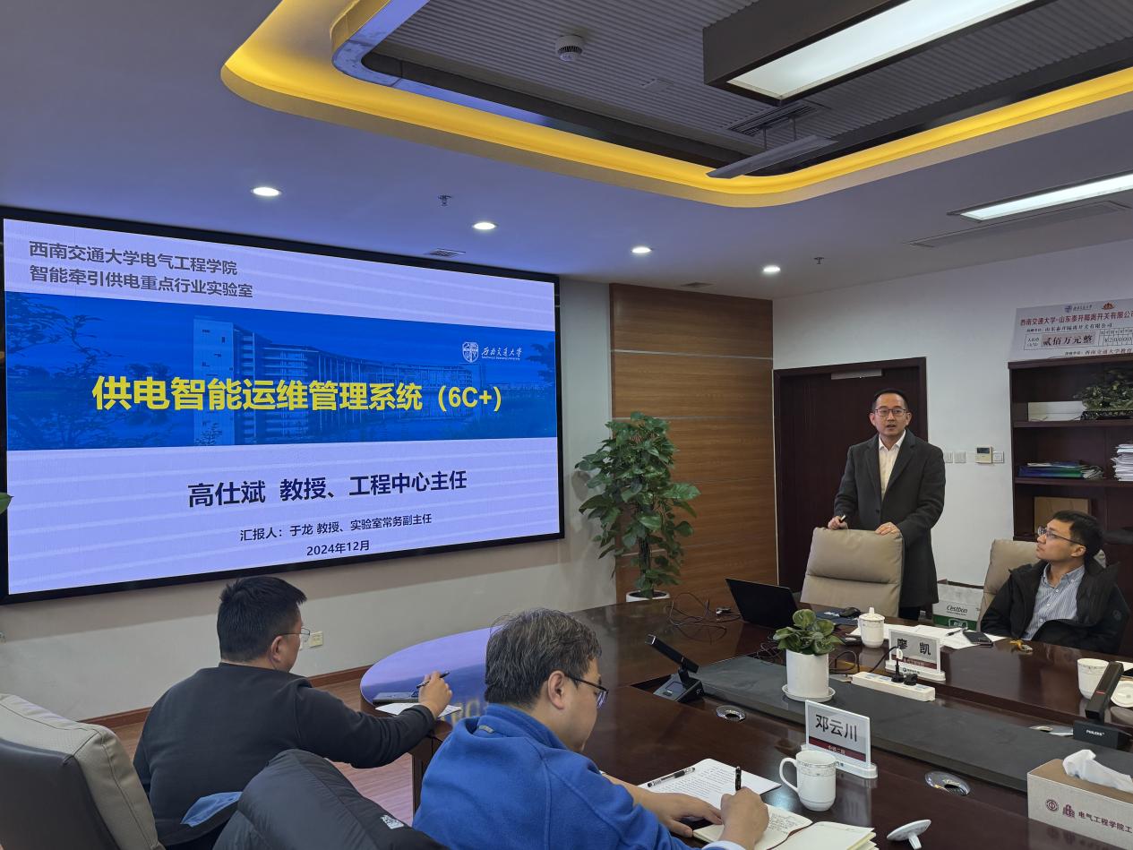 智能牵引供电铁路行业重点实验室常务副主任于龙汇报了供电智能运维管理系统(6c )的研发情况。实验室持续推进供电运维数字化、智能化,在广州局运用供电智能运维管理系统,通过数据中心、检测监测、设备维修、健康管理、辅助决策、考评管理六大模块实现检测维修和管理决策。下一步,实验室将围绕6c 数字孪生、6c 低空运维、6c 智能维修、6c 智慧决策、6c 能源管理等项目进行升级。