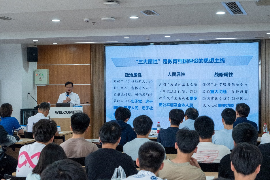 为引导师生深刻认识教育强国建设的战略意义,5月14日下午,西南交通大学党委常委、副校长何正友为学院师生讲授《从教育大国迈向教育强国》专题思政课。学院党委书记王斌、党委副书记邢晓鹏、团委书记张异、学工组辅导员及本科各年级学生共同学习。