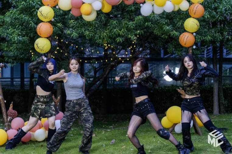 前奏一响,舞者登场。甘雨荞、谭咏倪、程暄惠、龚渝越四位电气2024级的同学带来开场街舞《whiplash》,张力拉满,成功带动全场氛围。