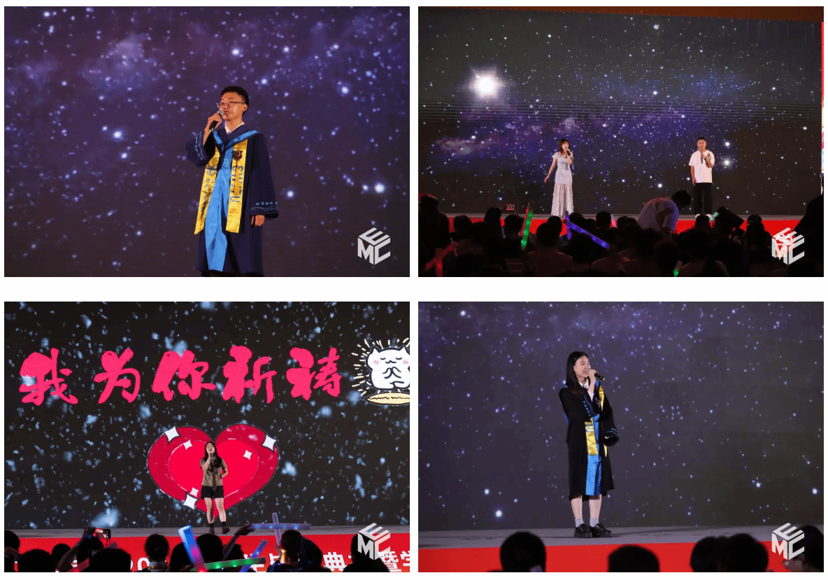 典礼结束,学院为毕业生们筹办了“星光冷餐会”和毕业生歌会,厅堂内熙熙攘攘,笑语欢歌此起彼伏,空气中浮动着糕点的甜香,与学子们那份难舍的眷恋、真挚的谢意揉合成一片温馨。师生们围坐共话,细数着校园往昔的温馨片段,让音符代替致辞,用旋律续写毕业诗行,伴随着悠扬的骊歌,互道珍重,对明日的灿烂前景描绘出无尽的期盼与遐思。