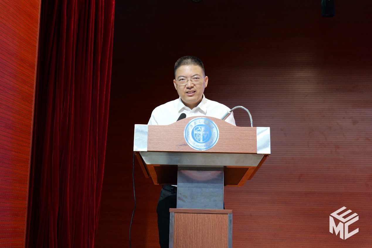 马光同院长发表了题为“文脉悠远,电气之光”的讲话。他首先代表学院向新同学的到来表示最热烈的欢迎和最衷心的祝贺。马院长从悠久历史、雄厚师资、学科实力、科研水平以及创新成果等方面,全面介绍了学院的辉煌成就。面对百年未有之大变局加速演进的时代背景,马院长向全体新生提出了三点希望:一是要厚植家国情怀,做“心怀家国”的筑梦人;二是要锤炼过硬本领,做“堪当大任”的栋梁材;三是要修炼格局气度,做“矢志前行”的奋斗者。希望同学们传承“厚德载物,求是创新”的电气精神,在锐意创新中拥抱未来,在追求卓越中成就精彩人生。