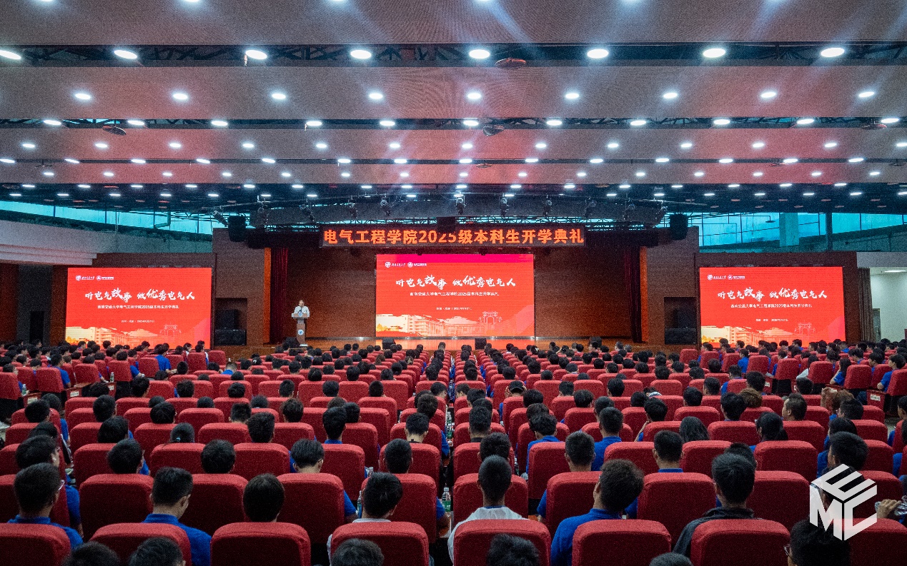 9月21日上午9时,“听电气故事,做优秀电气人”电气工程学院2025级本科生开学典礼在犀浦校区二食堂三楼大学生活动中心举行。电气工程学院院长马光同,党委书记王斌,党委副书记邢晓鹏,副院长解绍锋、杨平,副处级组织员魏振兴,国际化办学主管、电子信息工程系主任黄德青,电力工程系主任吴积钦,电工电子系主任严仲明,团委书记、纪委副书记张异,综合办公室主任樊兵兵,学生支持办公室主任张婷婷,本科教务员梁志,2025级本科生班导师、校外生涯导师、全体辅导员老师以及全体本科新生参加典礼。典礼由邢晓鹏副书记主持。
