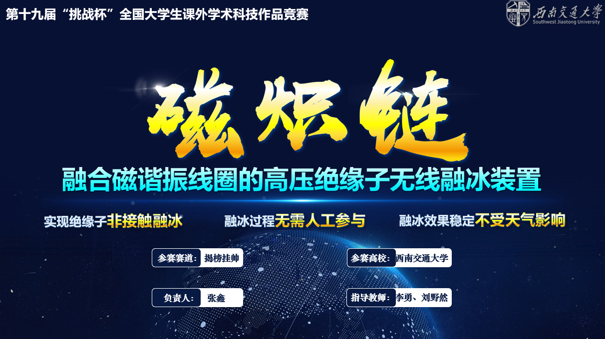 10月14日,2025年度中国青年科技创新“揭榜挂帅”擂台赛“新能源领域”终审主擂台赛在北京昌平圆满落幕。在校团委的指导下,电气工程学院李勇老师指导的作品“磁炽链-融合磁谐振线圈的高压绝缘子无线融冰装置”,在全国众多参赛项目中脱颖而出,代表学校成功斩获学生赛道特等奖,这是学校在“挑战杯”这一全国顶级科创赛事的“揭榜挂帅”赛道上,首次斩获特等奖,实现了这项荣誉的“零突破”,以硬核科创实力诠释“青春为中国式现代化挺膺担当”的赛事主题。