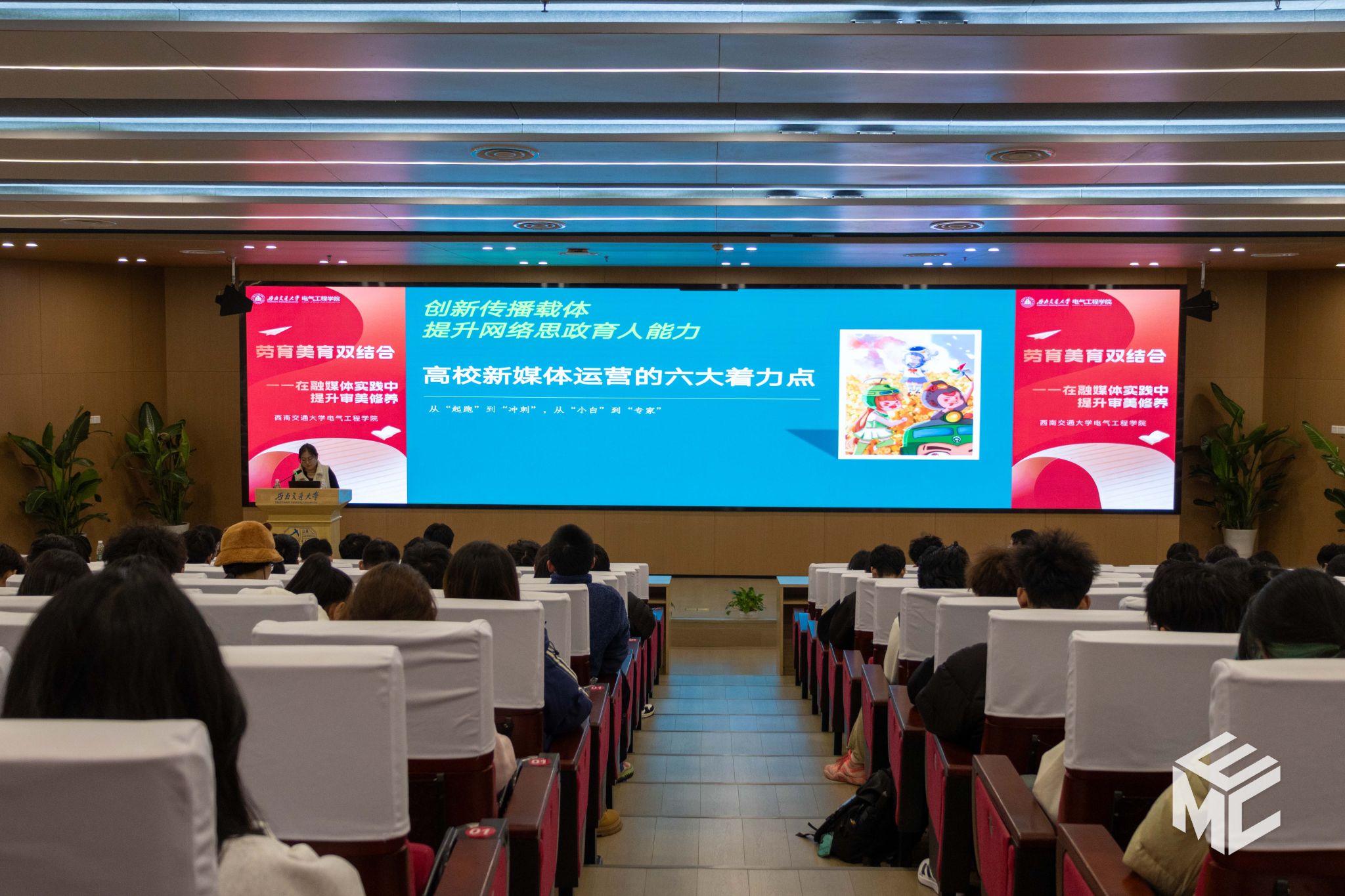为探索“劳育”与“美育”在融媒体实践中的深度融合,提升学生骨干的新媒体运营能力与审美修养,11月20日晚,由电气工程学院团委主办、电气工程学院媒体事务中心(emc)承办的2025年“劳育美育双结合——在融媒体实践中提升审美修养”第一期活动在犀浦校区图书馆一号报告厅顺利举行。活动特邀西南交通大学党委宣传部新媒体中心主任朱莹燕老师、西南交通大学党委宣传部(新闻中心)摄影师鞠红伟老师担任主讲嘉宾。活动由电气工程学院辅导员赵娜老师主持。